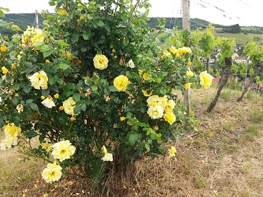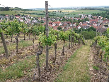 Drei Mal Panorama bedeutet natürlich auch eine Steigung, die in allen drei Fällen jedoch zu verkraften ist. Weinberg eins ist schnell erklommen, der Aussichts-Pavillion lädt ein zur ersten Rast. Danach geht´s auf der Höhe entlang Richtung Prüßberg, dann kurz mal steil nach unten, ehe wir den Ort durchwandern und dort feststellen, dass sich eine Einkehr lohnen würde. Zu dem Thema später mehr.