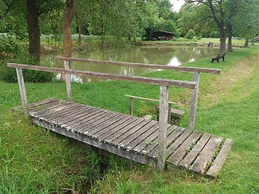 Los geht´s am besten an der Kirche in Michelau. Gegenüber steht das Schild, auf dem man sich den Weg nochmal anschauen kann. Wir laufen dann Richtung Dingolshausen und Gerolzhofen ein paar Meter an der Straße entlang, ehe es nach rechts per Brücke über die Volkach geht und in die Natur hinein. Nochmals links abbiegend begehen wir eine Verlängerung des Weges an der Kläranlage entlang, dann geht es nach Norden, bevor wir rechts abbiegend auf den ersten Hügel zusteuern.