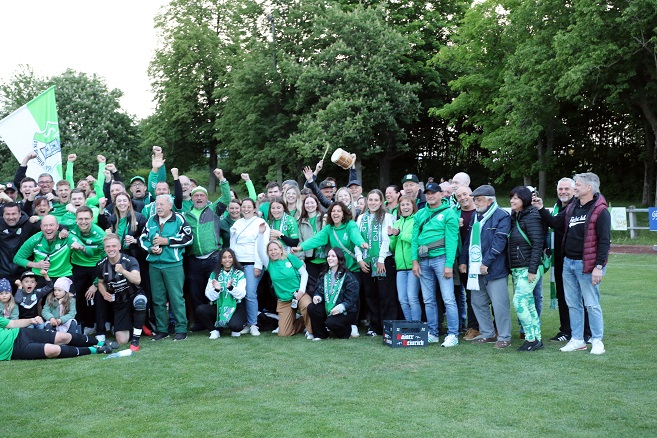 Elke Schaller und der Kroatien-Reisen.Abieter kroati.de gratulieren und drückt der DJK Büchold die Daumen für die Relegation.
