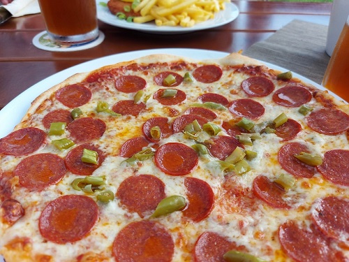 mainfranken.news-Vielschreiber Michael Horling und seine alles fotografierende Partnerin Petra Moritz wagten guten Mutes den Test und entschieden sich zu ein paar Kellerbieren aus dem Mönchshof in Kulmbach für eine (wirklich recht scharfe) Pizza Diavolo und ein wunderbares Wiener Schnitzel (nein, es waren zwei…) mit Pommes und einen frischen Beilagensalat. Perfekt, so muss es sein!