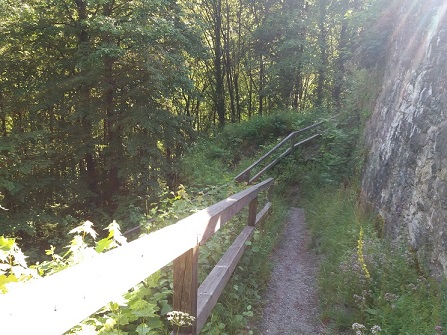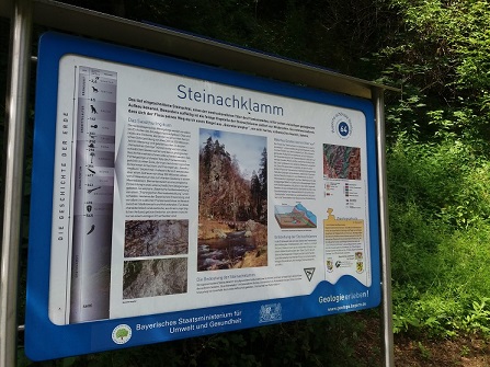 Dann geht´s zurück, auf der anderen Seite der Steinach führt der Weg zunächst an einem Geologiepfad entlang und dann meist durch schattige Bäume auf einem gut augebauten Untergrund wieder rund 45 Minuten lang zurück zum Auto.
