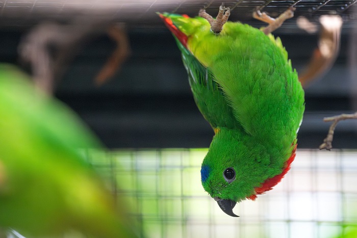 Bild 2: Papageien können klein und bunt sein wie das Blaukrönchen („Fledermauspapagei“).