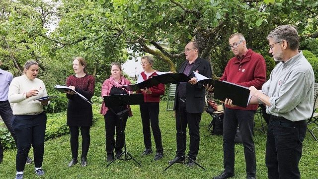 • Das Vokalensemble der Auferstehungskirche Würzburg „Cantoccini“ trug stilecht mit Vogelgezwitscher zum Gartenambiente bei.