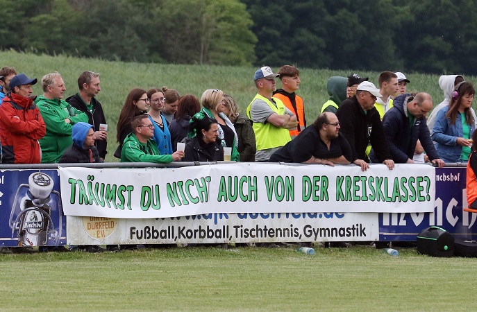 „Träumst Du nicht auch von der Kreisklasse?“, so lautete die Banner-Botschaft der Knetzgauer Fans. Am Ende aber durfte der Gegner mit einer riesigen Fahne der Türkei den Aufstieg feiern. Bitter für den 1. FCK, der nun bereits zum dritten Mal in Serie als Dritter der A-Klasse scheiterte. 2023 hatte man ggeen den FC Augsfeld keine Chance, letzte Saison war ausgerechnet die SG Knetzgau 2 in der Relegation knapp mit 1:0 überlegen. Damals kamen erst 660 Fans nach Steinbach und dann gar 953 nach Sand am Main.