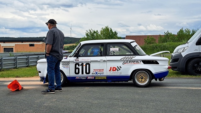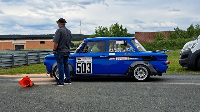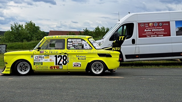 Die Schweinfurter NSU-Fahrer Steffen Hofmann und sein Sohn Jannik wollten auch gerne diesen Sonderpokal. Steffen setzte mit 1:18,60 zunächst die schnellste Trainingszeit, im ersten Lauf lag er einen Wimpernschlag mit 7/100 Sekunden hinter Gerber. Mit technischen Problemen hatte Jannik bereits im Training zu kämpfen, rechtzeitig zum ersten Lauf war das Fahrzeug an der Startlinie doch erneut kam es zu Problemen und so stellte er den NSU ab. um größeren Schaden zu vermeiden. Der NSU wurde liebevoll nach den Unfall am Bergrennen Eschdorf in nur drei Wochen wieder aufgebaut, nun geht es auf Fehlersuche in die heimische Werkstatt. bevor der Berg wieder ruft.