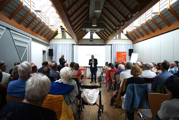 - Franz Alt referiert im voll besetzten Saal des Kolping-Hotels