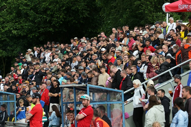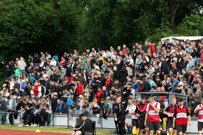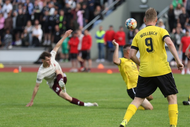 MÜNNERSTADT – Das letzte Relegationsspiel war nochmals ein echtes Highlight vor 1400 Zuschauern im Stadion des TSV Münnerstadt mit bestens gefüllten Tribünen und dem lautstarken Anhang des Siegers auf der Gegenseite, der das „TSV“ auf der Anzeigetafel für sich nutzte.