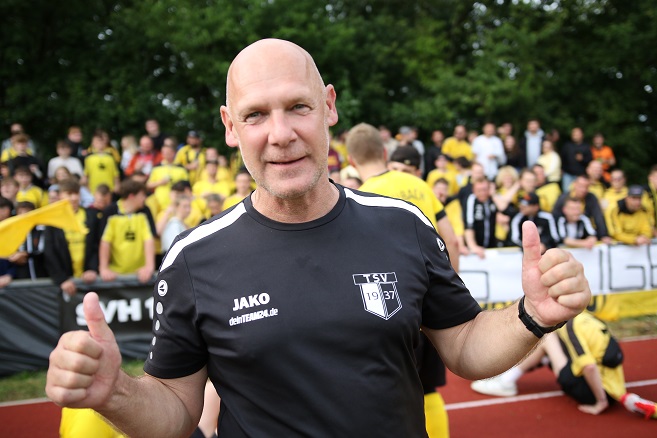 Dominik Schönhöfer durfte an alter Wirkungsstätte feiern. Wollbachs Coach mit höherklassiger Erfahrung auch in Großbardorf oder Schwebenried schaffte das, was seinem Vorgänger Michael Jahns, einer der ersten Gratulanten am Sonntag, 2019 noch nicht gelang, als das Team in der Relegantion scheiterte. Nun also die Rückkehr in die Kreisliga, in der der frühere Bezirksligist 2016 letztmals spielte.