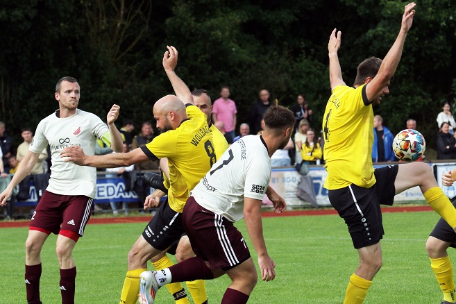 „3“ stand am Ende dahinter für den TSV Wollbach, „1“ bei der SG Herbstadt/Irmelshausen, die nun wirklich abgestiegen ist, nachdem es ja nach der Niederlage in Rödelmaier gegen Ostheim eine zweite Chance gab. Wie auch für die Wollbacher, die gegen Steinach bereits 2:0 führten und doch noch verloren. Diesmal brachten die späteren Sieger den Vorsprung recht locker über die Zeit. Der Ehrentreffer der Verlierer fiel 20 Minuten vor dem Ende. Danach brannte aber nichts mehr an.