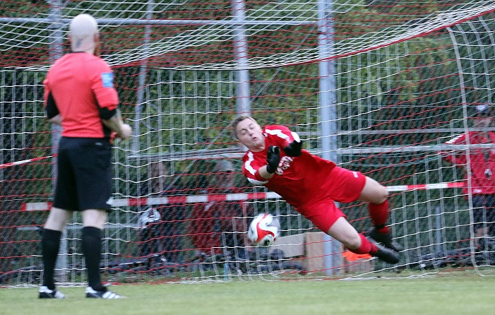 Warum das Bild: Als Bücholds frisch für´s Elfmeterschießen eingewechselter Torhüter Adrian Stock den ersten Veruch der Großbardorfer parierte und die DJK traf, da sah es nach einer Fortsetzung des Märchens aus. Doch wie eigentlich fast immer drehte sich dann doch alles nochmals.