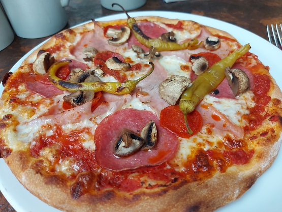 Neben der Pizza Mary kamen zwei Speisen auf den Taller, die man empfehlen kann: Die vegetarische Pizza Jessica mit verschiedenem Gemüse und die Tortellini Piccolo Italia mit Hackfleischsoße, Schinken. Erbsen und Pilzen. Ein Gedicht!