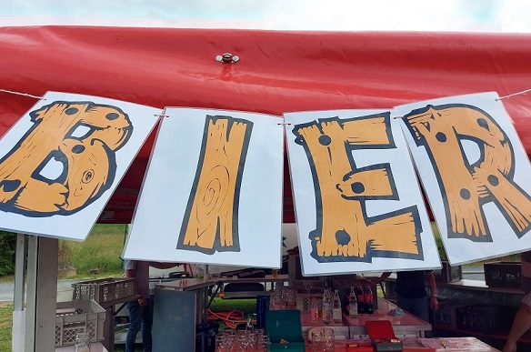 Los ging´s ab Schleerieth, wo das Auto so gerade noch einen Parkplatz fand. Nach knapp mehr als einem Kilometer war mit Rundelshausen das erste Ziel schnell erreicht. Etwas außerhalb des Orts auf einer Wiese beim Festbetrieb floss das erste Bier, ein Kauzen aus Ochsenfurt. An selber Stelle wird übrigens bals wieder gefeiert, nämlich das Waldfest.
