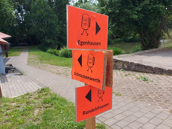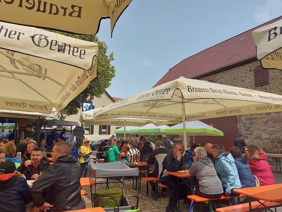 Allerdings schmeckte das Spezial der Brauerei Martin aus Hausen so gut, dass die Entscheidung leicht fiel für eine zweite Halbe. Na gut, es ist ja auch eine BIERwanderung…. Trotzdem geriet der Zeitplan deshalb ein bisschen durcheinander. Es ist halt auch zu schön auf dem Schnackenwerther Festplatz.