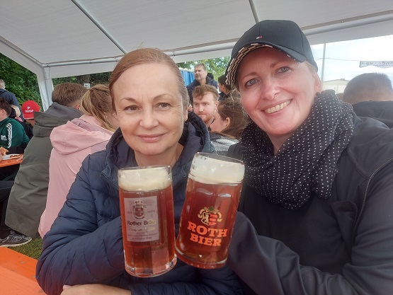 Klar war, dass nun über den Teufelsgraben Schleerieth anvisiert wurde. Mit nur rund einem Kilometer ein kurzes Teilstück. Der Hauptort der Bierwanderung mit mehreren kleinen Zelten und einer Bar für die Abendveranstaltung war ordentlich gefüllt. Wer hätte das am Morgen geglaubt, als sich das Wetter noch gruselig zeigte?!