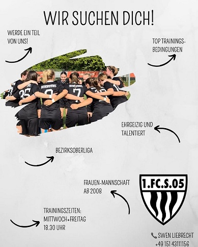 SCHWEINFURT – Auf einem ungewöhnlichen Weg sucht der FC Schweinfurt 05 Spielerinnen für seine Damen-Mannschaft für die kommende Saison. Dies ist ein Aufruf des Vereins: