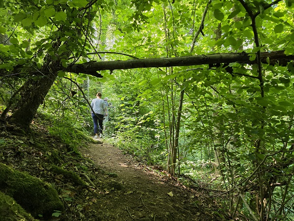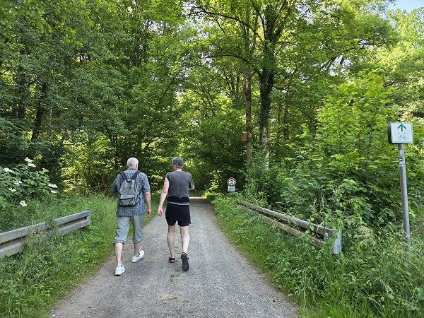 Von hier sind´s gerade mal 700 Meter nach Sailershausen – allerdings nur über den nächsten und nahezu zugewucherten Pfad nach oben. Die testende Wandergruppe bog lieber nach links ab, machte so zwar einen Umweg von bestimmt nochmals 1,5 Kilometern, ersparte sich aber wohl ein paar Zecken…