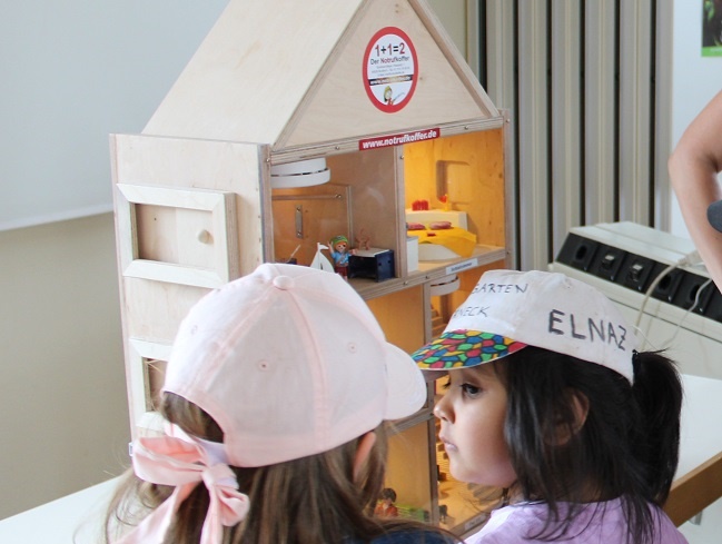Besonders eindrucksvoll war das Experiment „Was brennt – und was nicht?“, bei dem die Kinder hautnah miterleben durften, wie unterschiedlich Materialien auf Feuer reagieren. Beim Modell des Rauchhauses wurde es dann richtig spannend: Was passiert eigentlich, wenn Rauch in ein Haus eindringt? Wo ist es gefährlich – und wo kann man sich retten? Spielerisch und eindrucksvoll wurde hier gezeigt, wie wichtig richtiges Verhalten im Brandfall ist.