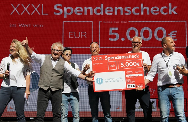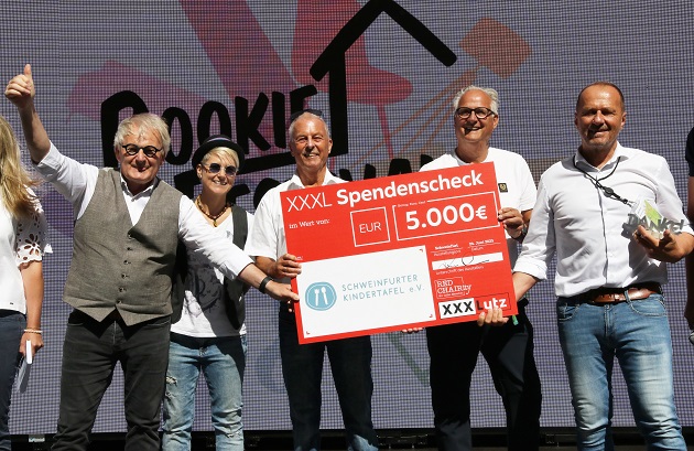 Und wie schon beim ersten Mal spendete XXXLutz einen beachtlichen Betrag an die Schweinfurter Kindertafel. Mit 5000 Euro diesmal sogar noch weit mehr als 2024. „Damit können wir einen ganzen Monat die hungrigen Schweinfurter Schulkinder mit Frühstückspäckchen versorgen“, strahlte der Kindertafel-Vorsitzende Stefan Labus bei der Scheckübergabe auf der Seebühne.