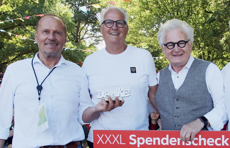 Da XXXLutz mit seinen Möbelhäusern nun schon wieder so bemerkenswert spendete, bekam Alois Kobler, der Deutschland CEO von XXXLutz, aus den Händen von Labus und seinen Begleitern der Kindertafel eines der seltenen „Danke“-Symbole Nr. 065 überreicht, eine Wertschätzung für eine dauerhafte oder besonders große Unterstützung.