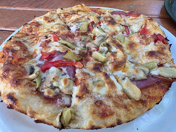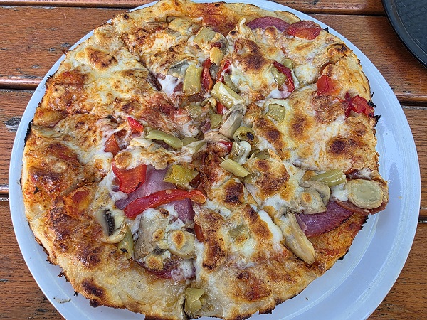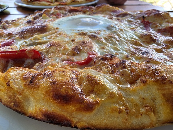 Nun das Wiedersehen in dem Dorf bei Oerlenbach. Etwas abseits gelegen bietet das Lokal einen der schönsten Biergärten der Region. Und beste Küche, so wie in Kützberg schon. Beim Premierenbesuch am neuen Ort entschieden sich die beiden Schonunger zu ein paar Kellerbieren der Zeiler Brauerei Göller für Pizza: Die Spezial mit allem und die Margarita mit üppigen Beilagen und als Krönung dem Ei.