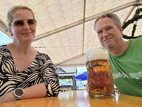Natürlich kühlten sich die beiden Schonunger auch wieder im schattigen Biergarten des Festzelts bei einer Festmaß der Kulmbacher Mönchshof. Während man sich in München sogar im Oktober bereits frühmorgens um die Plätze auf den Bänken schlägt, haben die Schweinfurter irgendwie nicht wirklich große Lust auf die große Biergaudi. Zumindest nicht an einem Donnerstagnachmittag.