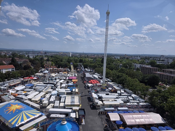 Die ganz schnellen Sachen führen die mainfranken.news-Gäste nicht. Auf dem Kopf zu stehen, herum gebwirbelt zu werden oder auf der Höhe nach unten zu fallen, das ist freilich genau das, was die jungen Leute am Volksfest lieben. Drei Tage und diesen Donnerstag ist das noch möglich.