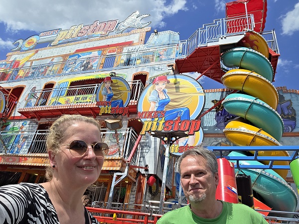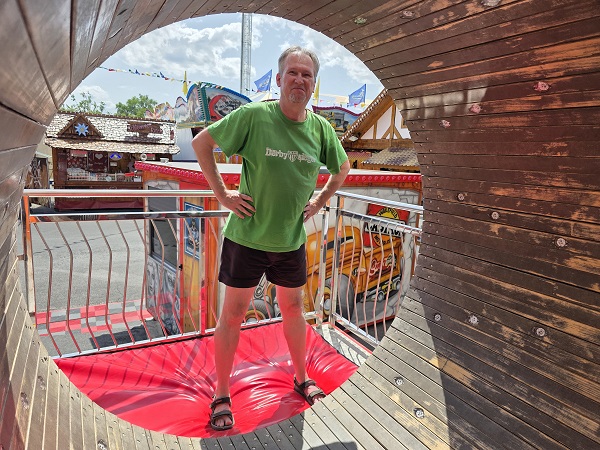Erfrischen am besten wo? mainfranken.news-Vielschreiber Michael Horling und seine alles fotografierende Partnerin Petra Moritz testeten da diverse Möglichkeiten. Alleine schon im Laufgeschäft Mike´s Pitstop klappt das. Wenn man erstmal durch die vier Stockwerke gelaufen ist, über Rollen, wegklappende Böden, durch Stangen hindurch und letzten nach unten gerutscht ist, dann warten dort auf dem Weg nach draußen ein paar fiese Wasserfontänen. Bei 30 Grad freilich marschiert man da gerne durch.