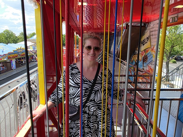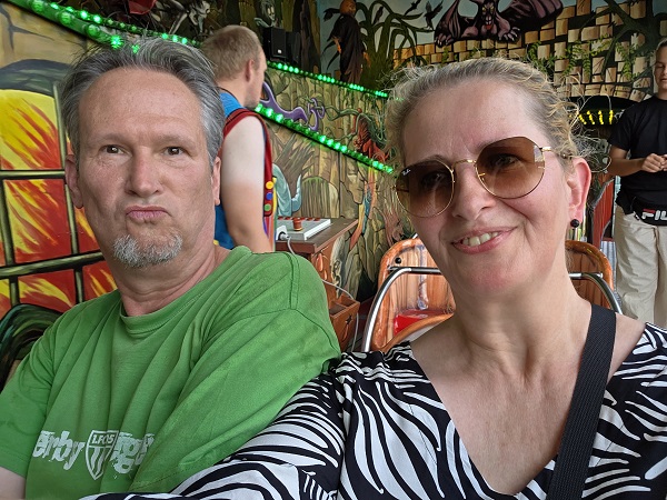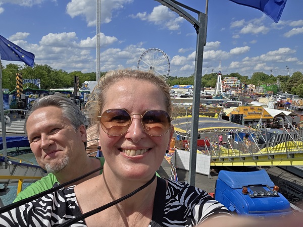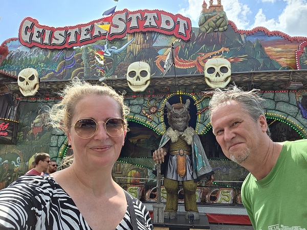 Riesenrad fuhren die beiden Volksfestfreunde noch, blickten auf das benachbarte Sachs-Stadion und auf den Festplatz. Um zum Abschluss natürlich auch die Geisterbahn zu testen. Okay, zwei, drei Mal erschrickt man da drin wirklich ganz schön….