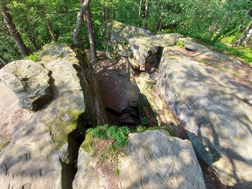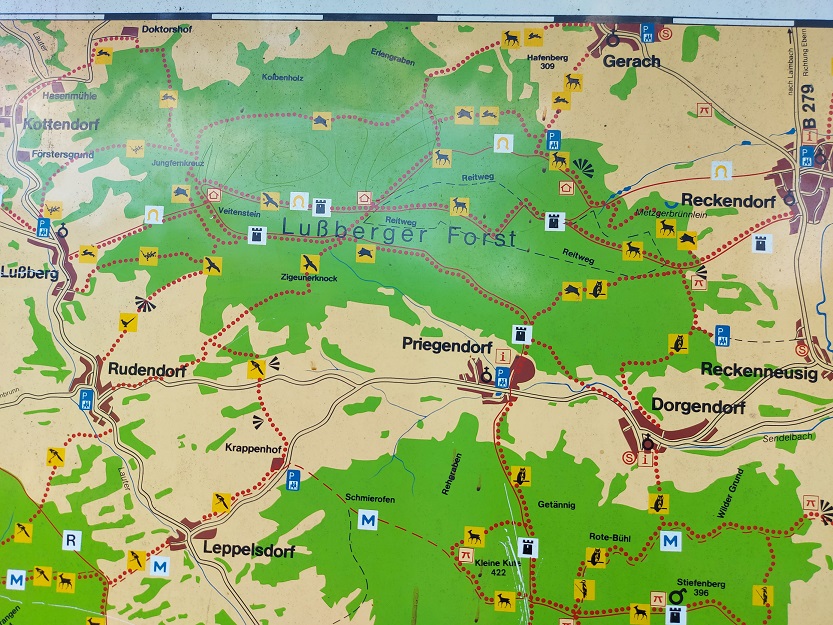 In der Veitensteinhöhle, die man nach Absprache sogar besichtigen kann, sollen einst Zwerge gelebt haben. Und ein Ritter soll mal mit seinem Pferd vom Felsen abgestürzt sein. Sagenhafte Geschichten! Für die Wanderer besteht nun, wenn sie maximal um die 5 Kilometer im Gesamten laufen wollen, die Möglichkeit eines kurzen, aber teilweise recht steilen Abstiegs nach Lußberg zum Wanderparkplatz.
