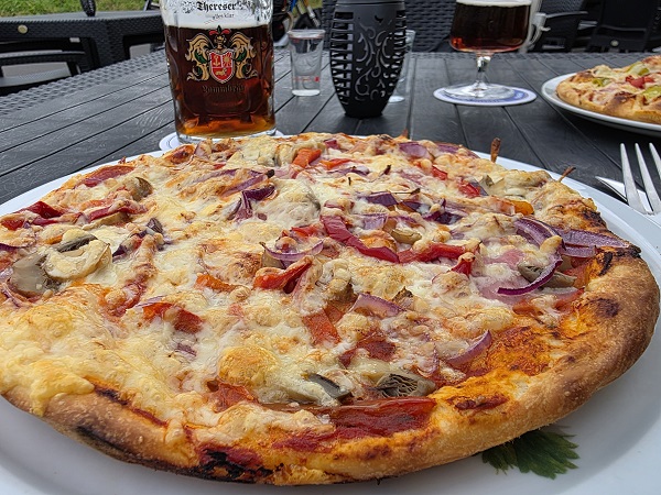 Mindestens genauso lieben sie die Küche dort. Die Testserie ging weiter mit wieder Pizza zu ein paar guten dunklen Bieren. Diesmal gab´s die Spezial und die Kavala. Beide sind eigentlich mit jeweils allem belegt, was man sich auf einer Pizza so wünscht. Schaut lecker aus, oder?