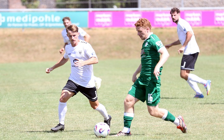 „Toll, wenn man sowas kann. Aber das tat uns weh“, weiß VfB-Trainer Dominik Betz. Denn die beiden Halbzeiten waren komplett unterschiedliche. „Nach der ersten können wir eigentlich klar führen…“, sagt Betz zurecht. Nicht nur, dass Zugang Kevin Mutove auf Flachflange von rechts von Timo Jung zwischenzeitlich ausglich. Vorher schon lag nach dem sehenswerten Führungs-Knaller von Nico Grimbs mehrfach das 1:1 in der Luft. Pascal Schittler aber scheiterte einmal in einer Überzahlsituation an Maximilian Weisbäcker. „Und dann haben wir noch zwei Mal bei drei gegen einen den Keeper angeschossen….“
