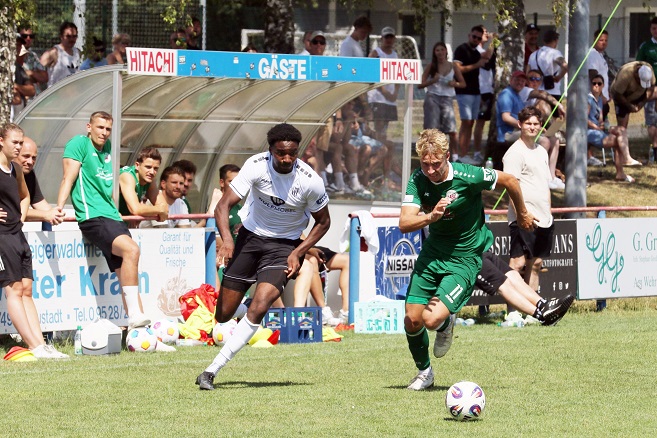 „Das waren zu einfache Ballverluste. Und dann haben wir nicht so gut verteidigt, als dass der Gegner keine Gelegenheiten haben konnte“, bestätigte Victor Kleinhenz den gleichwertigen Gegner. „Aber für die frühe Findungsphase waren auch viele gute Passagen dabei“, so Schweinfurts Coach. Beim Freistoß-2:1 von Johannes Geis sah man die Qualität des Neuzugangs. Und nach der Pause schnürte der FC 05 den Regionalligisten zunehmend ein. Kurios das 4:1 von Leonard Langhans, dessen Flankenball unhaltbar und ungewollt im Tor landete. „Die zweite Halbzeit sind wir nur nachgelaufen, weshalb das 5:1 auch in der Höhe verdient ist“, gibt Dominik Betz zu.