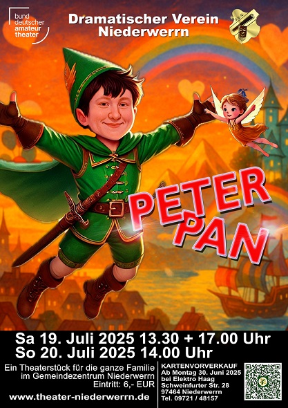 NIEDERWERRN – Der Dramatische Verein Niederwerrn spielt für sein großes und kleines Publikum „PETER PAN“, ein Familienstück von Walter Edelmann & Frank Engeln