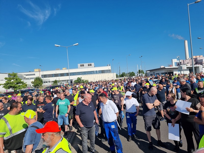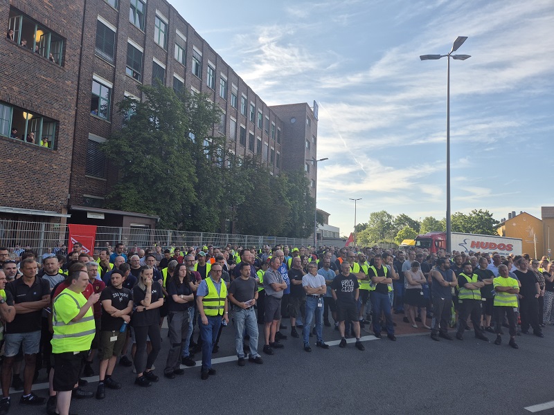 SCHWEINFURT – Unter dem Motto „Warnsignal” haben sich am Montag, den 30.06., rund 2.000 Beschäftigte vor dem Werkstor versammelt, um anlässlich des Besuchs von ZF-CEO Holger Klein am Standort Schweinfurt auf die verschärfte Lage zu reagieren.