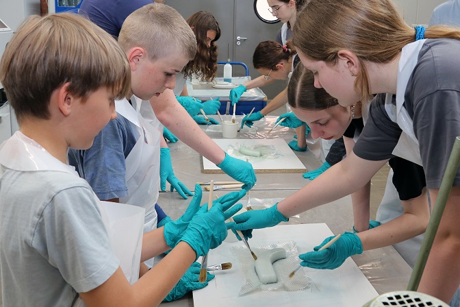 - Nicht zu viel und nicht zu wenig Harz auftragen – beim THWS-Ferienprogramm konnten Jugendliche unter anderem erste Erfahrungen mit der Kunststofftechnik machen (Foto: THWS/Eva Kaupp)
