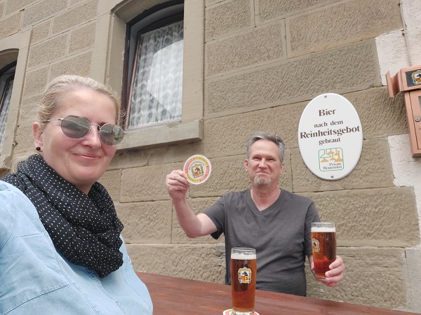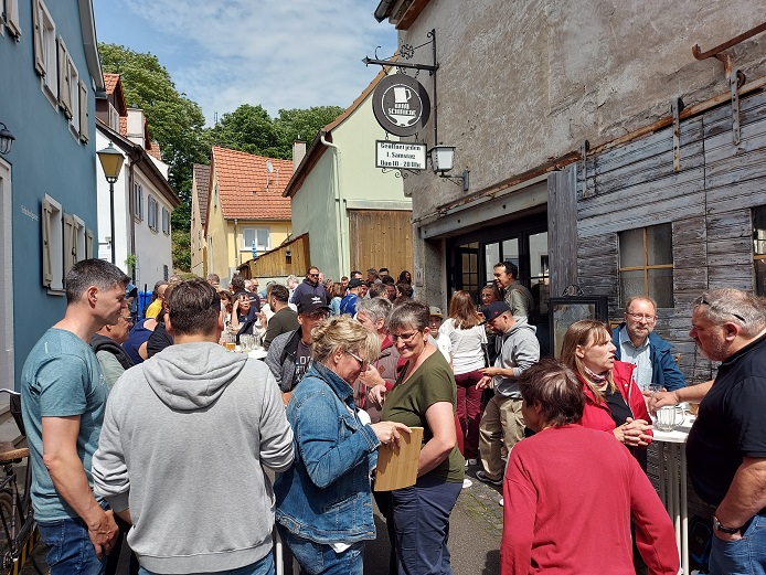 Zum Start in den Juni gab´s Schmiedkeller, Landbier hell, Pale Ale und Schmiedehammer II von den Zapfhähnen. Die Gäste aus Schonungen probierten das Bockbier, wandete dann und fuhren noch ein paar Orte wweiter.