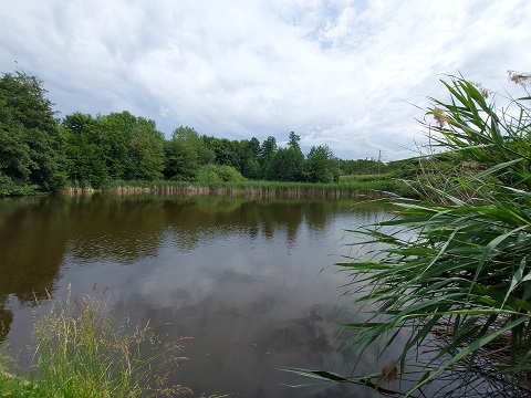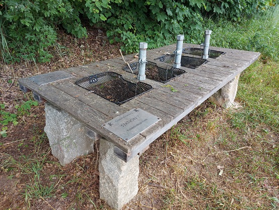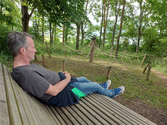Auf Wasserspiel, Weidenkunst und den Weitsprungkasten für Tiere folgt die wohl schönste Station: Direkt am Eichelsee befindet sich das Kletterspinnennetz in einer kleinen Waldlichtung mit gemütlicher Sitzgelegenheit. Und das auch noch ungefähr nach der Hälfte der Strecke.