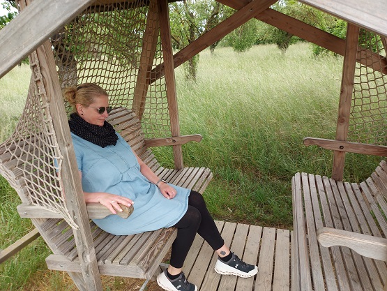 Weiter geht´s: Nach dem Kaleidoskop wird nach links abgebogen. Die Schwedenschaukel ist wieder was zum länger Verweilen, ebenso der Fühlkasten und der Nicht den Boden berühren-Weg – wieder was zum Balancieren.