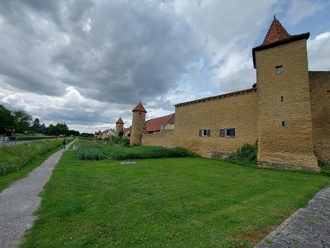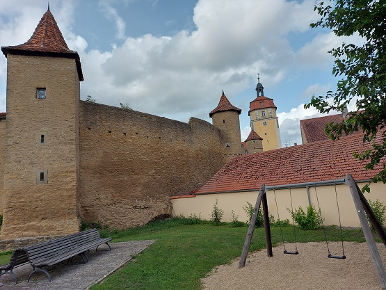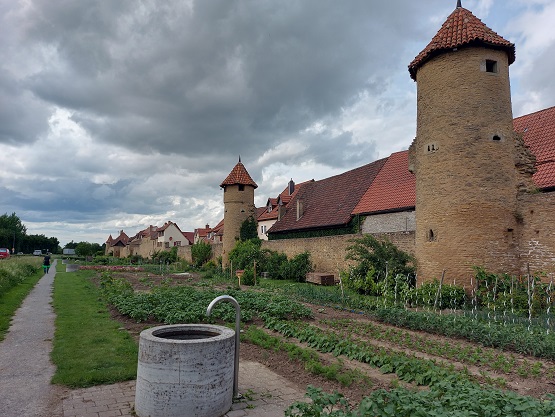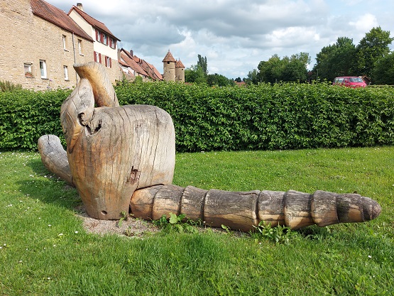 Doch der romantischste Part des Weges ist nun der außerhalb der Stadtmauer entlang der Grabengärten mit Kunstwerken und Spielgeräten. Trotz der lauten Hauptstraße daneben.