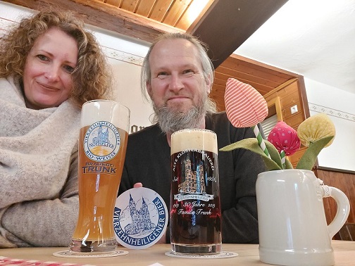 Bei diesem Besuch ging es zum Fußball nach Lichtenfels. Und, ja, natürlich reizte es, nochmals die alte Klosterbrauerei Trunk bei Vierzehnheiligen zu besuchen. Diesmal die gute Stube, nachdem das Wetter für den Biergarten zu schlecht war. Den dunklem Bock gab´s noch. Nach dem Genuss einer Halben wanderte auch gleich ein ganzer Kasten ins Auto für den Bierspaß zuhause.