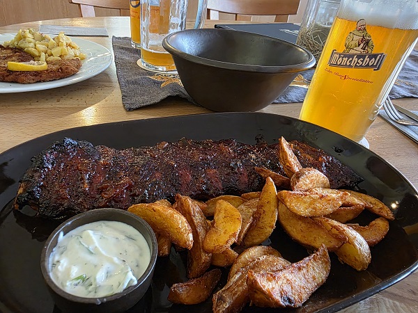 mainfranken.news-Vielschreiber Michael Horling und seine alles fotografierende Partnerin Petra Moritz testeten an einem Freitagabend mal wieder diese Spareribs und auch das Schnitzel Wiener Art mit selbst gemachtem Kartoffelsalat plus Beilagensalat.