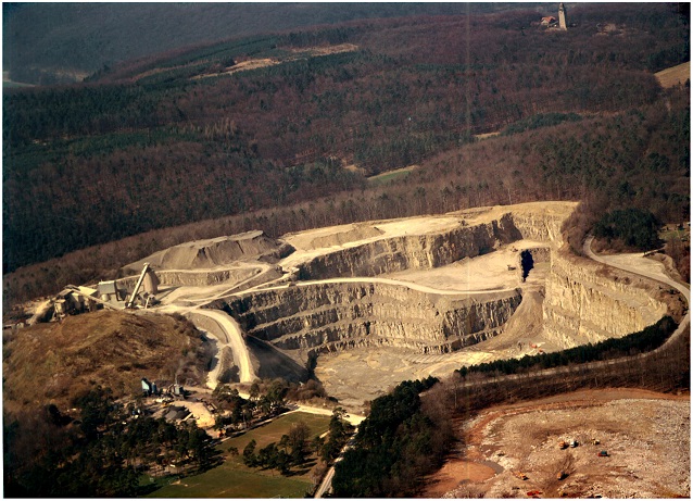 Auf den Bildern: Luftaufnahmen zeigen die Deponie im Jahr 2017 und einen Steinbruch. Dort hat die Firma Albert bis 1988 Kalkstein zur Schotterherstellung abgebaut.