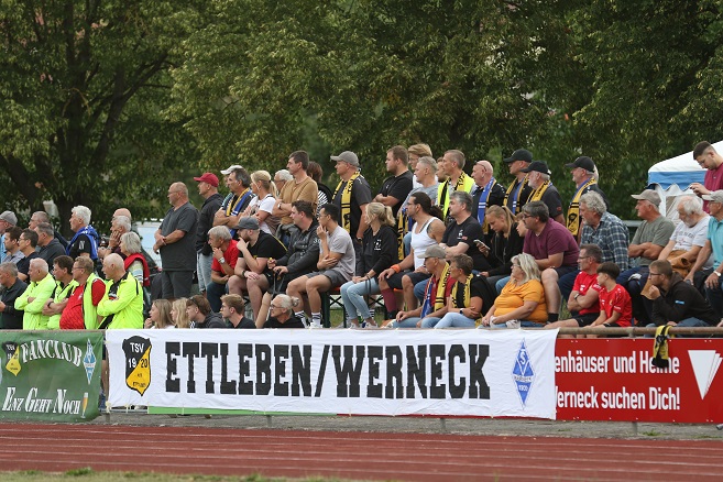 Offiziell 500 Zuschauer kamen in die Kimojo Arena mit dem neuen Namen und sahen ein Derby, das viele Wünsche offen ließ. Heimtorwart Jakob Memmel parierte zwei Mal gegen die Gäste. Riesenchancen gab es nicht. „Das war ein typisches 0:0-Spiel“, so Ettlebens neuer Trainer Martin Schendzielorz nach dem Match. Vom „1:1-Spiel“ sprach der kickende Gäste-Coach David Fleischman, der die beste Gelegenheit für die SG mit den Partnern aus Rieden und Opferbaum besaß.