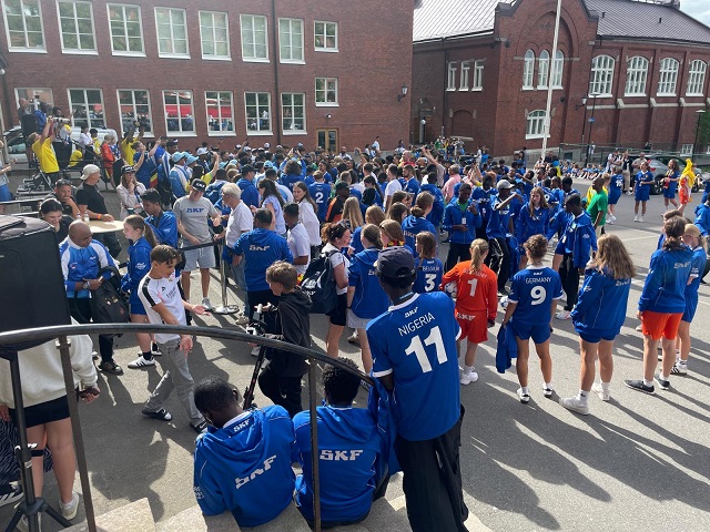 Mit großer Vorfreude auf das Turnier bezog man am Samstagabend die Unterkunft in einer Schule. Hier fand am Sonntag, 13.07. eine Willkommensfeier aller Mannschaften im Hof statt. Mädels und Jungs aus Nigeria, Sambia, Indonesien, Brasilien, Belgien, Indien, Ukraine, Deutschland und noch einige mehr feierten mit Musik und Tanz die Ankunft aus den verschiedenen Ländern, unter dem Motto Meet the World with SKF.