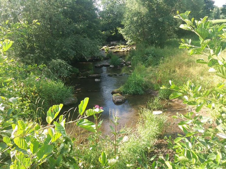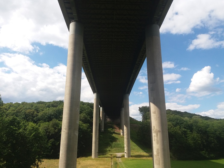 Der Hinweg ist noch nicht ganz so aufregend: Lange geht es linksseits an der Thulba, einem wildromantischen Bach entlang in Richtung Süden. Unter der beeindruckenden, mächtigen Autobahnbrücke hindurch wandern wir, dann wieder durch den Wald, ehe nach etwas mehr als fünf Kilometern Thulba erreicht ist.