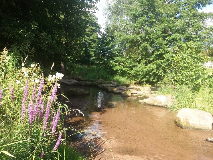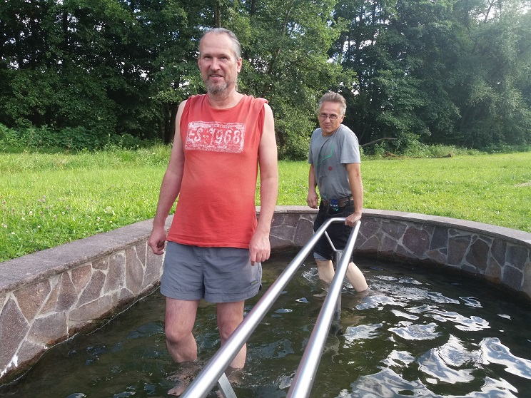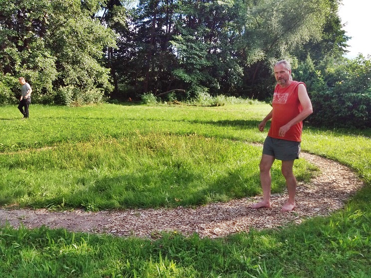 Und Spaß macht auch der Rückweg. Zunächst erreichen wir nach wenigen hundert Metern am Ortsausgang von Thulba Richtung Oberthulba einen Barfuß-Pfad mit einem Kneipp-Becken. Die 15 Minuten Zeit sollte man sich nehmen, um den Füßen etwas Gutes zu tun.