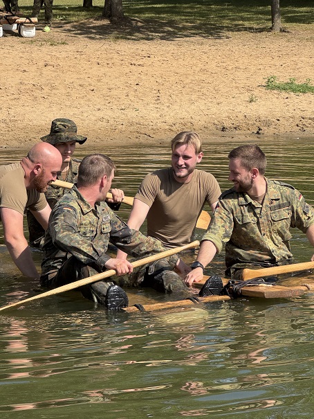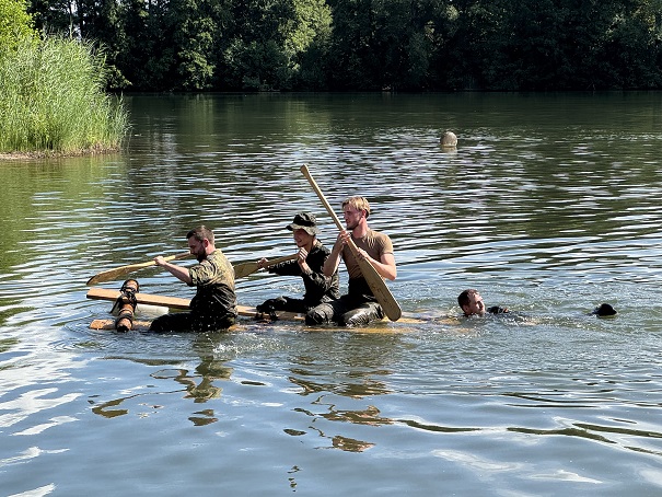 Ab 6:00 Uhr früh haben die Soldaten ein forderndes und vielseitiges Sportprogramm absolviert. Der Badesee hat dabei optimale Bedingungen geboten: Neben anstrengenden Schwimmübungen haben die Teilnehmer auch Floße gebaut und ihre körperliche Fitness wie auch Teamarbeit unter Beweis gestellt. Organisiert und geleitet wurde das Programm vom Team von Oberstleutnant Markus Pregitzer, dem Leiter des Bereichs Unterstützung.