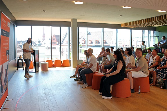 Die Bandbreite der vorgestellten Themen war groß – kein Projekt glich dem anderen. Ob soziale Teilhabe, kulturelle Bildung oder digitale Lösungsansätze – die Projekte spiegelten wider, was die Teilnehmerinnen und Teilnehmer beschäftigt und antreibt. In einem offenen Rundgang durch die 360° BASE (Zentrum für Gründung und Nachfolge der Sparkasse Mainfranken Würzburg) kamen Gäste, Studierende und Lehrende direkt miteinander ins Gespräch. Projektstationen luden zum Austausch ein, ergänzt durch ausgewählte Präsentationen der Projekte.