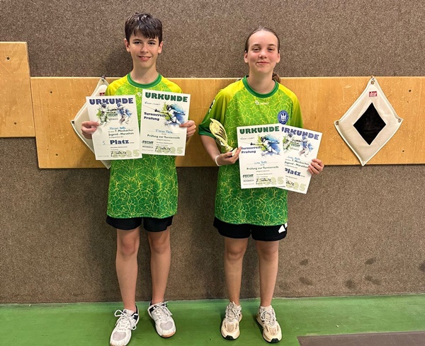 MOOSBACH / SCHWEINFURT – Sieben Fechter der Turngemeinde meldeten sich zur Turnierreifeprüfung in Mosbach. Ohne Probleme bestanden alle 7 die theoretische und praktische Prüfung. Dabei waren Lina Roth, Sofia Kovalenko, Malina Schuhmann, Florian Fella, German Müller, William Wollin und Bern Fast.