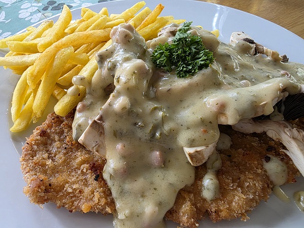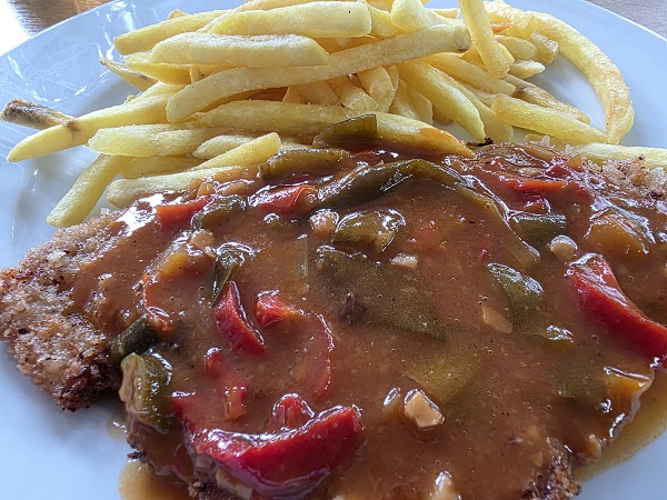 Also rein in die gute Stube – und zu ein paar regionalen Bieren weitere Gerichte testen: Diesmal kamen der Wurstsalat sowie je ein Jäger- und ein Paprikaschnitzel mit Pommes Frites auf die Teller. Da wird man satt, hat keinen Durst mehr danach – und freut sich schon auf den nächsten Besuch. Dann wieder im Freien. Geöffnet ist wegen Ruhetag nur Donnerstag nicht. Lohnen kann sich ein Besuch besonders am 2. August: An diesem Samstag sorgt Didi Blender für heiße Musik: Country, Oldies und Rock´n´Roll.